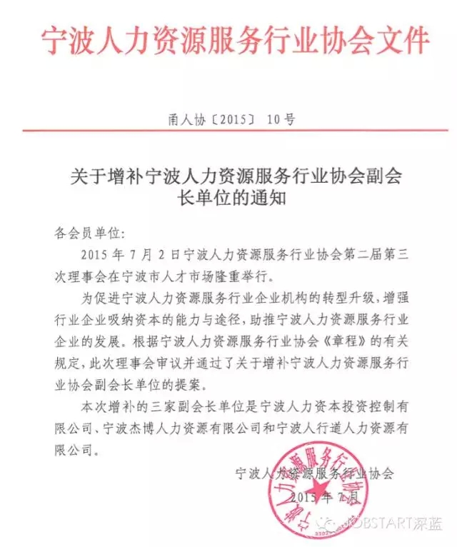 值得關(guān)注的是,本次會(huì)議通過(guò)了“審議關(guān)于增補(bǔ)寧波人力資源服務(wù)行業(yè)協(xié)會(huì)副會(huì)長(zhǎng)的提案”,杰博人力資源被推選為協(xié)會(huì)副會(huì)長(zhǎng)單位。