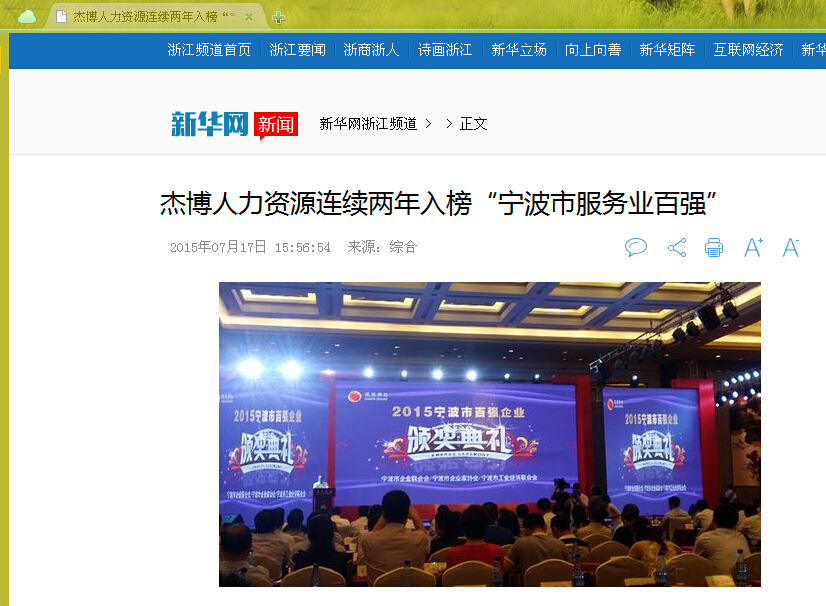 備受社會(huì)各界關(guān)注的“2015寧波百強(qiáng)榜”于7月16日發(fā)布,“寧波制造”、“寧波服務(wù)”、 “寧波競(jìng)爭(zhēng)力”等再次引起社會(huì)各界的廣泛關(guān)注,其中的“寧波服務(wù)”越來越受到重視,已然成為百強(qiáng)榜中的重要組成部分。以杰博人力資源等為代表的“寧波服務(wù)”更是在寧波的軟實(shí)力發(fā)展上下大力氣,以“寧波服務(wù)”服務(wù)全國乃至全球。